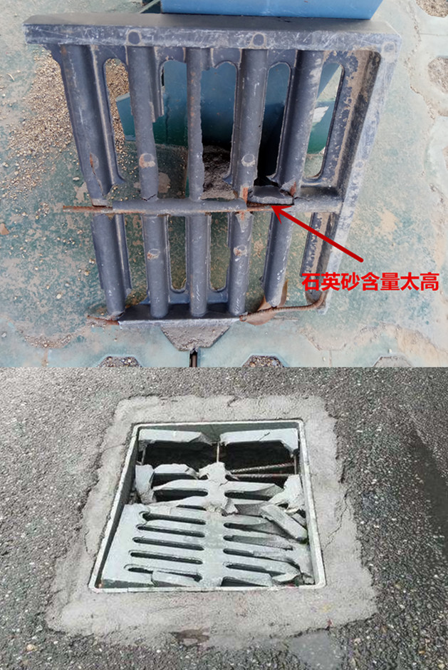 現階段溝蓋板的市場行情是什么樣呢?樹脂溝蓋板分為加砂溝蓋板和不加砂溝蓋板。市面上流通的大部分都是加砂的,加砂的溝蓋板只能走人,溝蓋板在生產過程中添加了石英砂就破壞了樹脂原有的韌性,很多廠家降低成本用低價來取悅客戶,在生產溝蓋板的時候降低樹脂的含量,添加大量的石英砂,結果就是溝蓋板的承載力也大打折扣,以價格低的優勢迅速占領市場,導致路面上看到的溝蓋板大部分都是劣質產品。(下圖所示)