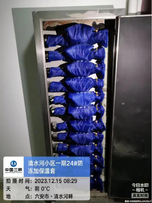 聞“雪”而動(dòng),保障在前全面提高對(duì)城市及農(nóng)村供水主管網(wǎng)、供水設(shè)施、排水設(shè)施、管道井、二次泵房的巡查頻次,重點(diǎn)對(duì)連廊式、鑲墻式、被陰面裸露小口徑管道通過加裝水表防凍保溫套、包扎表前表后管網(wǎng)保溫管、地埋表填砂、封堵管道井門等方式進(jìn)行防凍保護(hù),防止供水設(shè)施及管網(wǎng)凍結(jié)、凍裂。12月,水務(wù)公司共計(jì)開展地埋表井填砂保溫作業(yè)5424次,水表水管“穿衣戴帽”及包扎作業(yè)2826次,封閉管道井門作業(yè)13673扇。