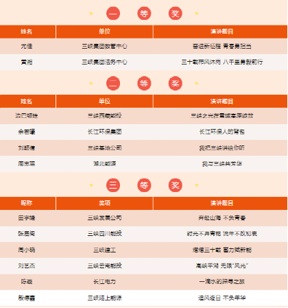 在隨后進(jìn)行的演講比賽中,經(jīng)過(guò)預(yù)賽、復(fù)賽層層選拔的12名決賽選手緊扣“奮進(jìn)三十載 啟程再出發(fā)”主題,結(jié)合自身工作實(shí)際,講述了從深山峽谷到雪域高原、從廣闊草原到荒漠戈壁、從長(zhǎng)江到海洋、從國(guó)內(nèi)到海外的三峽故事,展示了廣大職工奮進(jìn)新征程的精神面貌。