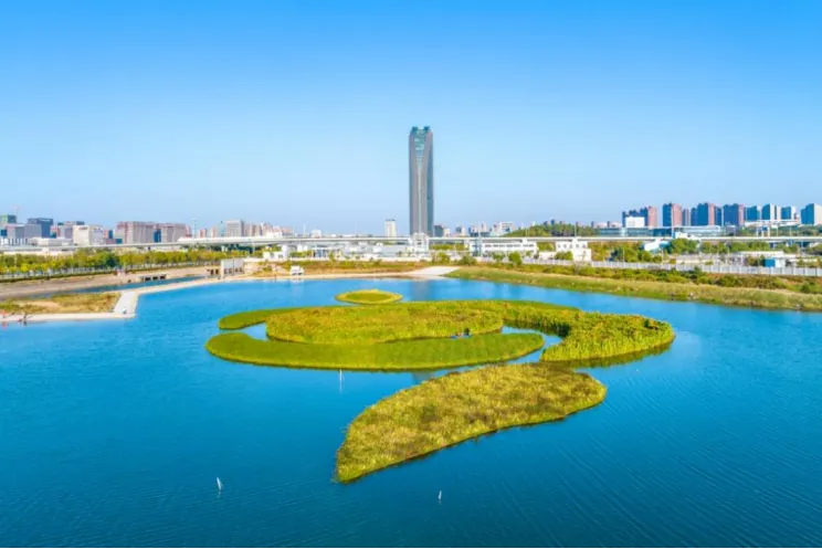 ▲ 在湖北武漢,三峽集團(tuán)開展亞洲最大城中湖——湯遜湖流域綜合治理,通過管網(wǎng)修復(fù)、引水活水、生態(tài)恢復(fù)、景觀提升等系統(tǒng)治理方案,恢復(fù)流域水清岸綠。攝影:胡九思