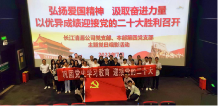 圖為7月26日,長(zhǎng)江清源公司黨支部與本部第四黨支部聯(lián)合開展“弘揚(yáng)愛國(guó)精神 汲取奮進(jìn)力量”主題黨日觀影活動(dòng),組織全體黨員和青年員工觀看愛國(guó)主義電影。
