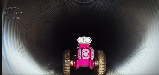 圖2?CCTV機(jī)器人在地下管道內(nèi)爬行檢測(cè)的動(dòng)態(tài)抓拍(攝影-趙紅霞)