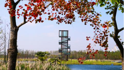 攝影愛好者在江東水生態(tài)公園進(jìn)行攝影練習(xí)? 拍攝:肖佳法