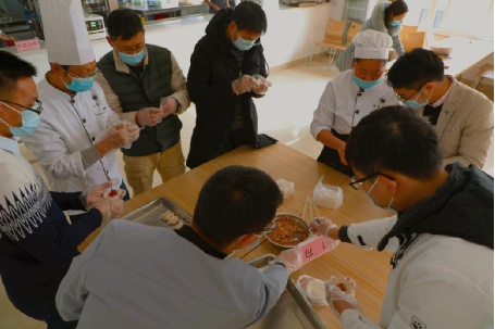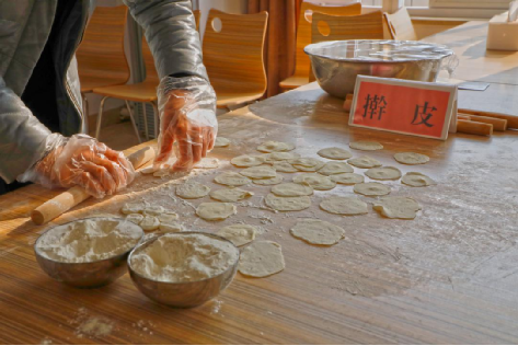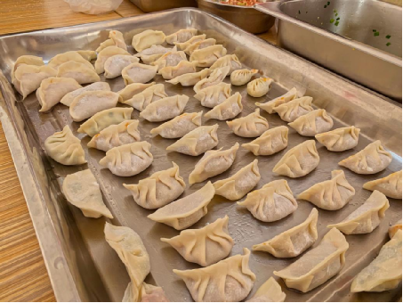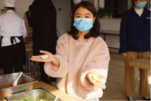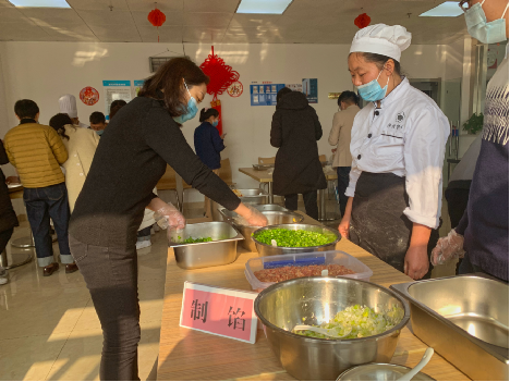 在餐廳廚師的指導(dǎo)下,大家制作了多種口味的餃子餡,學(xué)習(xí)花式手法包出了各式各樣的特色餃子。同時(shí),全員嚴(yán)格按照冬季疫情防控要求,佩戴口罩與一次性手套,確保食材安全、餐具消毒。