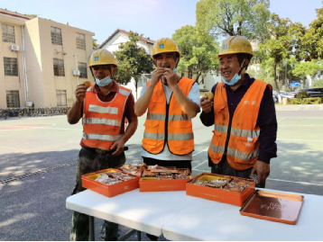 在中秋節(jié)來臨之際,湖南沅江項目公司開展了“情滿中秋 心系工友”慰問活動,為400余名建設(shè)者送上象征“團圓”的月餅,感謝他們?yōu)殚L江大保護項目建設(shè)作出的貢獻,并叮囑大家一定要注意施工安全,平平安安過中秋。