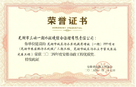 本網(wǎng)訊(雷進(jìn)發(fā) 程威強(qiáng)) 近日,2024年度安徽省市政工程優(yōu)質(zhì)獎(jiǎng)獲獎(jiǎng)項(xiàng)目名單公布,蕪湖水管家公司投資建設(shè)的蕪湖市城區(qū)污水系統(tǒng)提質(zhì)增效(一期)項(xiàng)目喜獲2024年度“安徽市政工程優(yōu)質(zhì)獎(jiǎng)”。